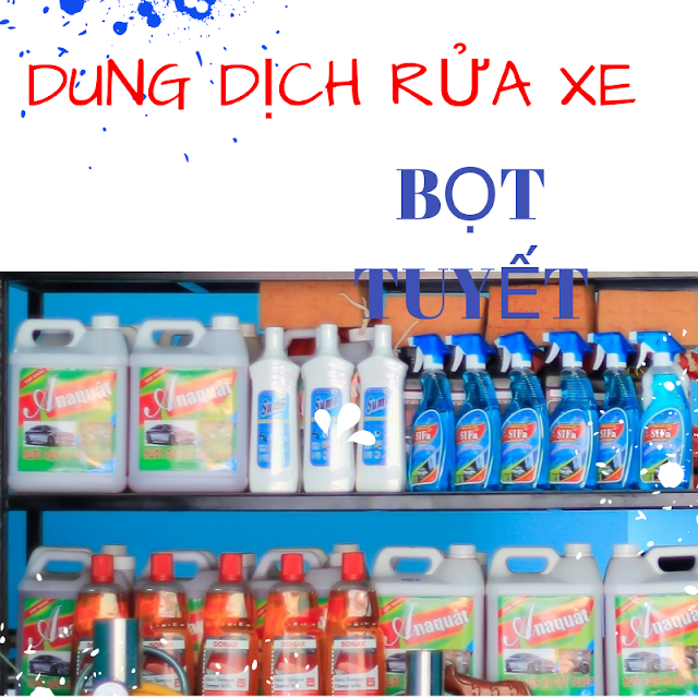 bình phun bọt tuyết giá rẻ và dung dịch rửa xe để vệ sinh xe như, làm sạch bụi bẩn, dùng khí nén làm khô xe.